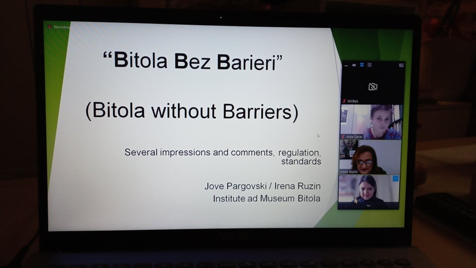Модераторка на вебинарот беше Аида Вежиќ од БиХ, а говореа Аида Шабац (Бих) на тема „Уметничка музејска програма за деца со аутизам“, Милена Милошевиќ Мициќ (Србија) зборуваше за дигиталните алатки и апликации што ја олеснуваат пристапноста во музеите и локалитетите, Ирена Ружин и Јове Парговски ја претставија нивната „Пристапна градска тура“ и „Битола без бариери“, а Жељка Сушиќ (Хрватска) се осврна на важноста за вклучување во културниот живот и за повозрасните граѓани, кои често се занемарени.