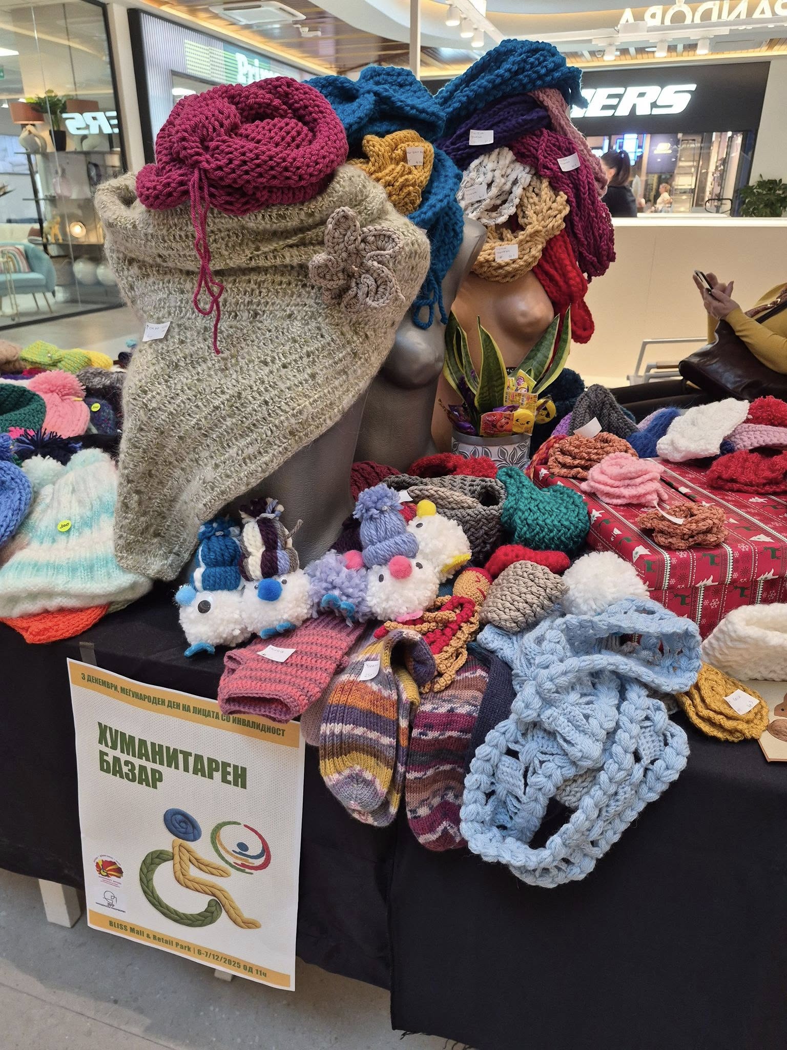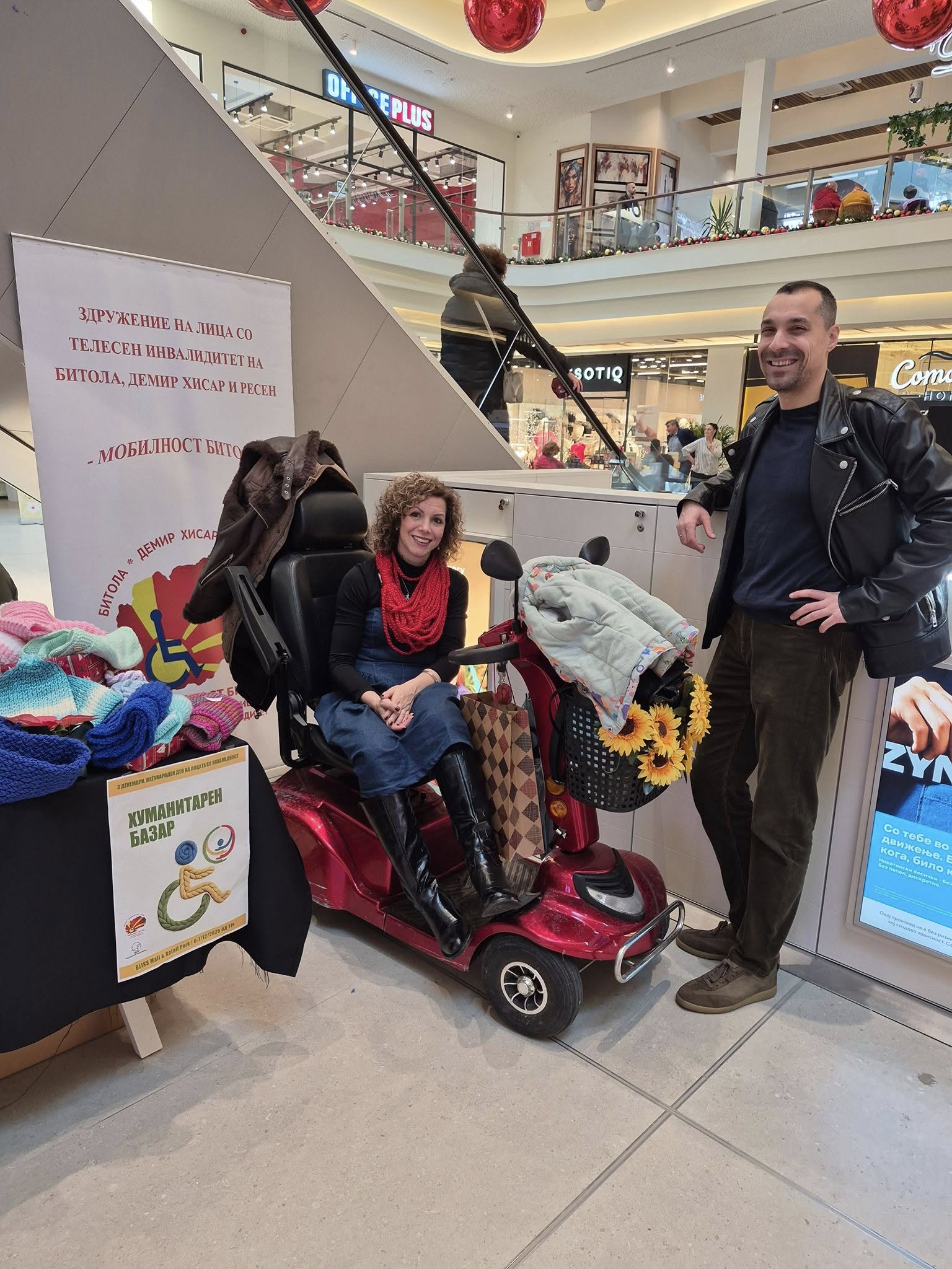 По повод Меѓународниот ден на лицата со попреченост – 3 декември, како и по повод Националниот ден на Мобилност Македонија – 4 декември и 10 декември – денот на „Мобилност Битола“, членови на „Мобилност Битола“ и на нашите пријатели од ЗУР „Македонски ракотворби“ организираа дводневен хуманитарен базар кој се одржа на 6 и 7 декември во „Блис Мол“ во Битола. На базарот беа изложени бројни ракотворби исплетени во рамките на работилниците што се одржуваат најмалку еднаш неделно во текот на изминатиот период. Од шалчиња и капчиња за деца и за возрасни, брошеви, навлаки за перничиња до чорапи, ракавици и бебешки ќебенца – посетителите имаа огромен избор создаден од вредните раце на нашите членки и пријатели, а важно е да се спомне и дека дел од изложените плетива беа донирани од „Плетена коцка“ од Скопје, како и од повеќе поединци кои срдечно ја поддржаа и помогнаа оваа иницијатива на „Мобилност Битола“. За пофалба се заложбите на нашите членови Биљана Тодоровска, Симона Јовеска и Дејан Милевски, како и Дијана Милевска и Ивона Јанкова, а особено нашите пријателки Зора Долеска и Сара Долеска, кои се можеби најголемите „виновнички“ за успехот на овој настан. Благодарност за одличната соработка на Снежана Јанкулова и Гордана Лазаревска од ЗУР „Македонски ракотворби“, а особена благодарност упатуваме и до „Блис мол“, како одлични домаќини на најпристапната локација во Битола, без ниту една физичка бариера. Уште поважно е тоа што работилницата за плетење со чингелаќе продолжува со полна пареа и со секоја нова средба добиваме нови пријатели и поддржувачи. Веќе во подготовка е и Новогодишен базар, а во план е подготовка на осмомартовски и велигденски базар. Се надеваме дека трендот ќе продолжи и во Новата 2026 година, со уште позасилено темпо. Активностите продолжуваат.